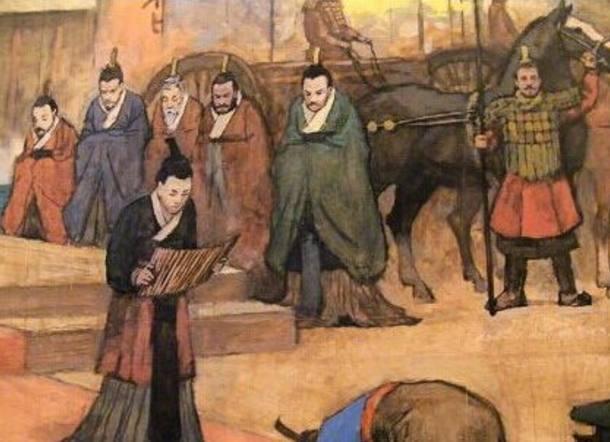 这样,便落下了得罪人多、称呼人少的尴尬局面。 而且性格耿直不会转弯的杨恽(不愧是太史公的好外孙),“每有忤己者必欲害之”,恃才傲物、争强好胜的结果,当然是被朝廷显贵们当作靶子,明枪暗箭一齐射击。尤其是与之失和的九卿之一太仆(近似乎皇帝的车队长)戴长乐的致命一击,可谓是不死都脱层皮。这就顺利诞生了一条令人哭笑不得的成语:一丘之貉。 话说有一次,作为著名士大夫的杨恽在朝中开会,商量国是,很像司马迁一样敢言的“炮筒子” 杨恽听说匈奴单于被人残害,他居然借题发挥有感而发:“这个残暴匈奴单于也是罪有应得,该死的家伙!我听说他专门听信谗言,残害忠良,不虚心纳谏,是一个是非不分的君王,结果是死于非命,国家也处于四分五裂之中,从来都是昏君误国。秦朝就是一个榜样,要不是秦始皇、秦二世专横跋扈,就不会那么快就亡国,也许现在我们还是秦朝的人,汉国甚至于没有立国的可能也。正因为自古以来,历朝历代的君王就像从同一座山丘里出来的貉一样,大都喜欢听信谗言,最终也全都逃不脱亡国的宿命。”于是一条著名的成语由此落地生根(这爷孙俩也真不是盖的,都是创造成语的历史牛人,“重于泰山”就源自司马迁之手)。不愧是历史世家熏陶出来的猛人,说话一套一套的,杨恽这话当然在理论上没有一点错误,错在真小人因此而进谗言要搞死他。因为说者无心,听者有意。杨恽的政敌早就想找茬收拾他,尤其是“草根皇帝”刘询在民间流落时结识的铁哥们太仆戴长乐,一直怀疑杨恽在背后说其坏话要暗算他,也早就想找个机会参杨恽一本,顺便让杨恽下油锅,以一泄私愤。 所以一听到这种“腹谤”意味甚浓的议政话题,简直是如获至宝,立马就上书告发杨恽没大没小,借商量国是之机诽谤朝廷,无人臣之礼。史曰“以主上为戏(即拿皇帝开玩笑),语近悖逆”,当然是想让杨恽以言入罪,说他近乎大逆不道。这一下,杨恽想不倒血霉都不可能了,祸从口出也,和他外祖父司马迁如出一辙。因为再淡定的皇帝,也是不能容忍别人把自己戏说为专门听信谗言的昏君,虽然杨恽本意也许并不如此。