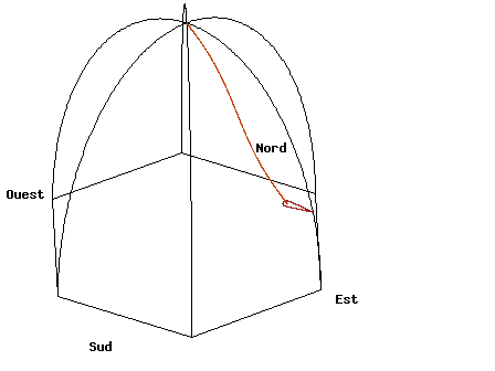 于是摆球的摆动超然于地球自转,也就确定了一个相对于恒星固定的摆动面。而以遥远的恒星为参照物,我们是可以观测到地球的自转的。就这样,摆球摆动的平面和地球自转就有了一个相对运动。 下面我们把傅科摆放在北极点,相对于恒星,我们就会看到,摆动平面不动,但是一个摆动周期之后,地球因为自转,摆球已经离开了原来的位置。
