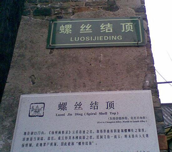 七.扬州螺丝结顶和无灯巷 很多扬州人其实都不知道这条小巷,如果我告诉你它在蒋家桥饺面店附近,估计你就知道它的具体位置了。 走过广陵路,往左拐,穿过几十米伸手不见无指的小巷就来到了传说中的“螺丝结顶”。这条巷子名非常特别,只有老扬州才知道,“螺丝结顶”其实是“垒尸及顶”的意思,“扬州十日”期间,这里是扬州最大屠杀场,死人一层铺着一层往上垒,最后尸体都垒到屋顶那么高。 “螺丝结顶”和“羊肉巷”等几条巷子错综复杂地交织着,附近居民说,这里根本不能装路灯,只要一装,第二天就熄掉,不是被人砸掉的,就是莫名其妙地熄掉的。灯炮拿下来好好的,但里面的钨丝已经断了,后来再也没有人敢去装新灯泡。走在巷子里面打手电筒也会莫名其妙地熄掉。任何电动的东西晚上到了巷子里都用不起来,摩托车、电瓶车都要推着走。附近的人家晚上一般都不出来。
