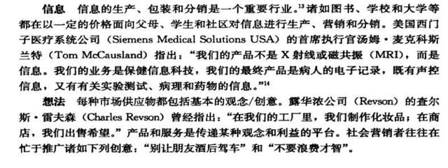 所谓的市场营销就是 “满足别人并获得利益” “满足别人需要并获得利益” “满足别人欲望并获得利益” “满足别人需求并获得利益” 这四句话,不但总结了什么是市场营销,而且指出了市场营销的核心。 市场营销从某种意义上来讲,就是为别人创造出高标准的生活而服务的。就是个人或者集体通过创造、提供、出售、同他人交换产品或者服务的过程而获得自己所需的产品或者服务。 那么市场营销到底营销什么呢?不要着急往下看;营销者主要经营的范围非常之广泛, 有形的产品、服务、事件、产权、人物、体验、信息甚至想法等,都可以作为营销者的经营范围。 产品 是生产营销的主对象,在我们这个人口稠密的国家,每年必须要有大量的大米白面,食品,日常用品,汽车用品等等现代化的必须品。 服务 保护大量的从业人员,饭店,美容店,保养师,宠物店,汽修师等,而且服务往往和产品结合到一起,顾客即接受产品还享受服务。 事件 如大型的商业义演,篝火晚会,艺术表演等,通过这些方式来吸引大众,从而有效的宣传自己。 产权 房地产,股票,金融,产权可以买卖,有买卖就有市场营销。 人物 也可以叫做“名人营销”电影明星,艺术家,军事家.首席执行官CEO等,比如现在头条非常火的杜子建,都是非常成功的推销了自己;我们每一个都应该树立自我品牌,打造自己的“知名品牌” 体验 合理运用产品和服务相结合,美容店的免费体验,网球场旱冰场的免费体验等。 信息 和想法,在《营销管理》 第14版中,这样来解释信息和想法