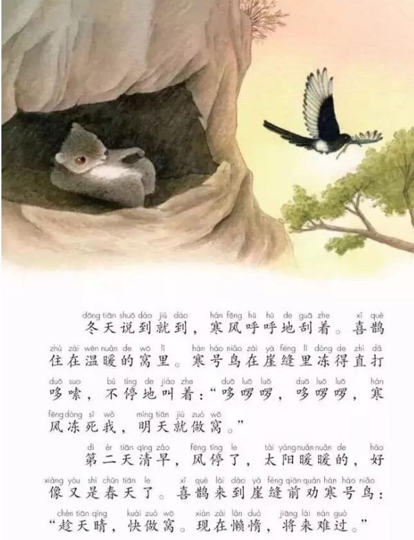 不过再来看看现在很多孩子接触到的少儿读物,其中的寒号鸟真的成了一只鸟。