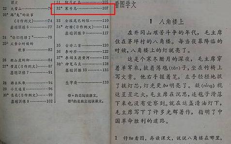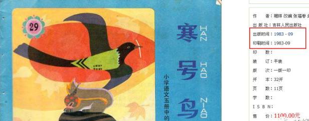 这是1983年版的小学语文课本,下方睡觉的就是寒号鸟;