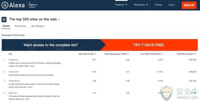安全分析师们找到的其中一条捷径,就是自动化从已有安全列表构建白名单的过程。管理白名单是件特别耗时的事,在分析师待办事项中堆积有其他调查时,还会成为一种干扰。然而,我们发现,利用已有列表组建白名单,可能意味着让你的公司对漏洞门户大开。 Awake Security的安全团队最近仔细审查了一个看起来良性的列表——世界站点排名网站Alexa前100万域名列表,意图评估该列表是否适用于构建白名单。尽管Alexa列表并非为白名单设计,很多安全团队就将之视为逻辑上的起始点。最常被访问的网站不危险,似乎是挺有道理的想法。在调查中,这些网站也确实会被自动认为是安全的。