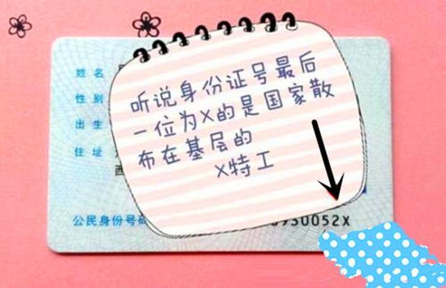 神秘的最后一位数字,其实就是一个验证码。假如你随机写了一个身份证号,这个号码就不一定存在。最后一个数字,是根据前17位数字推算出来的。可不是随随便便塞儿了一个,这也是为了严谨和安全考虑。有的人身份证最后一位是“x”,大家都不断猜测,这难道是什么特殊身份?不少网友还调侃99年的“保密协议”。其实那是罗马数字10,为了不让身份证成为19位,就用了罗马数字“x”来代替。
