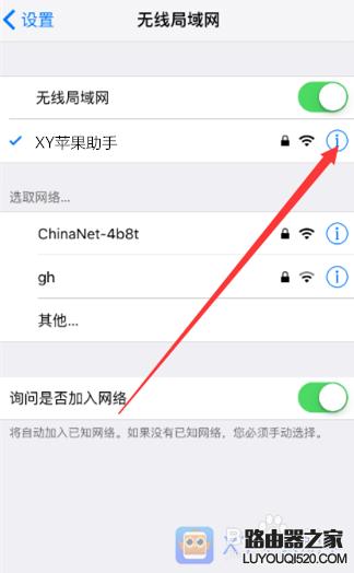 手机:以I0S为例,点击-无线局域网-wifi右边的蓝色感叹号-ip地址选择为【静态】,然后根据路由设置,输入相关参数即可。