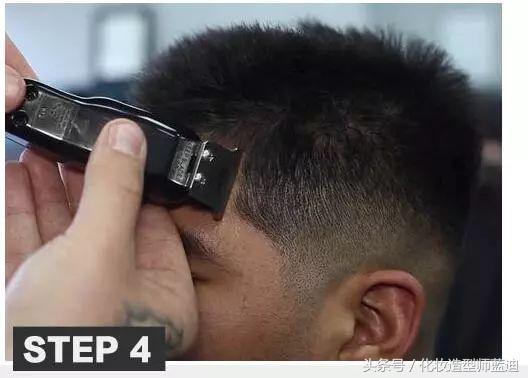 STEP 4: 使用剃刀把前额上细碎的刘海剃光。