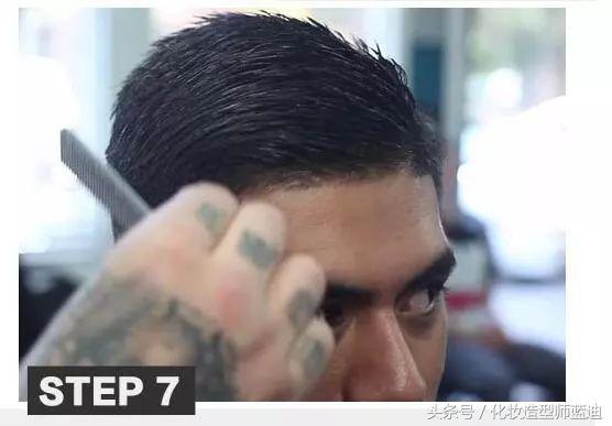 STEP 6: 使用发梳压好界线附近的头发,使用剃刀沿着分界线修短。