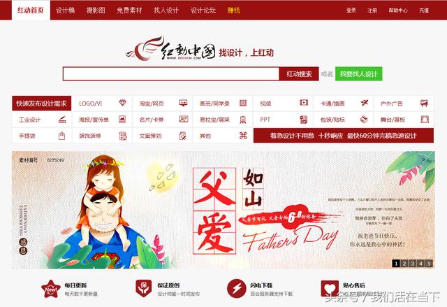 网站介绍:以“共享创造价值”为口号,专业的素材设计共享平台。提供各类素材,包括:图库、图片、摄影、设计、矢量、PSD、AI、CDR、EPS、图片下载、共享图库,等等。昵图网页面简洁经典,是大部分设计师下载素材的首选网站。因为是资源共享和交易平台,这里的素材都需要共享分或昵币,经典的设计素材还需要充值购买。 5.红动中国