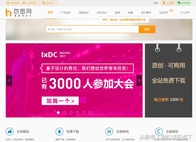 网站介绍:千图网是中国免费素材最多的网站,拥有130多万张免费素材,是中国最大的免费素材网站。提供:矢量图、psd源文件、图片素材、网页素材、ppt、图标热门主流素材免费下载服务,千图网以其独特的定位和全新免费运营模式,处于素材网站领先地位。 3.包图网