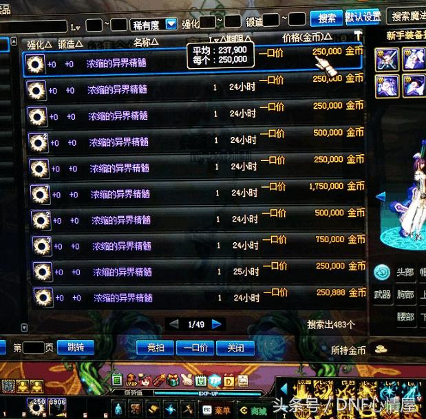 并不是指一个跨区,各大跨区拍卖行浓缩的异界精髓,在一夜之间蒸发,一千多页的异界精髓,瞬间只剩下几十页,你不得不佩服大商的财力,能够吃下上千页的浓缩精髓。就拿跨五大区来说,6月3日早上的时候,拍卖行还有2000页的浓缩精髓,而下午一看的时候,整个拍卖行浓缩的异界精髓,仅仅只有49页,大商真的是恐怖如斯,浓缩的异界精髓被秒的所剩无几。