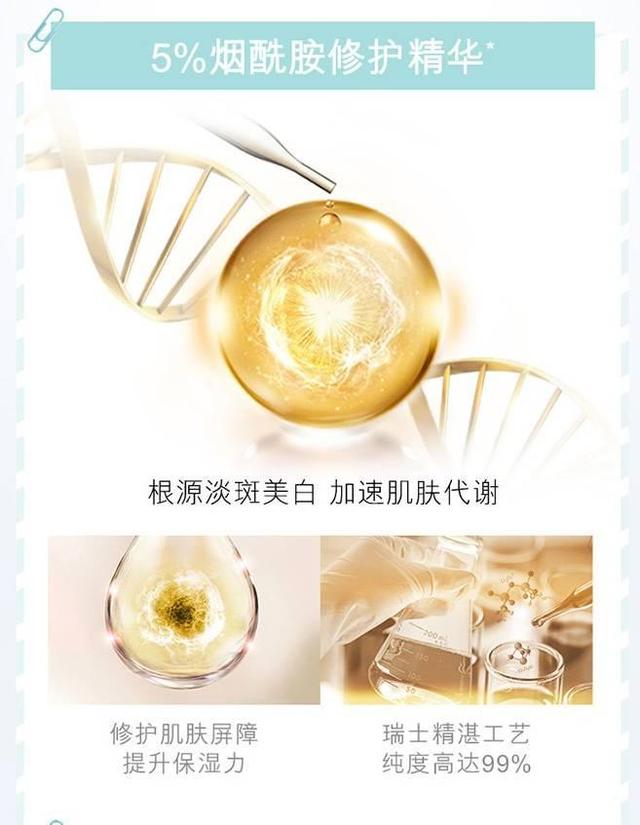 功效方面,烟酰胺对我是很有用的,这瓶用下来这一整个夏天我都没有变黑,(胳膊腿没好好防晒还是黑了,555)。我本身的肤色偏黄,用下来一瓶后肤色并没有变白,真的白了反而我会害怕,但我为啥又囤了两瓶?是因为我觉得皮肤更健康更稳定了,虽然没变白,但也没像胳膊一样变黑,而且整体上有变亮一点,痘印也确实变淡了,这就是我要的效果。所以强推给泥萌哈! 浓墨重彩了这么多,可见我对它是有多爱,比起SKII的天价,它太完美了,平价且好用。除了OLAY Pro-X博研诗淡斑小白瓶,再给泥萌介绍一款具有美白功效的精华--倩碧匀净卓研淡斑双效精华露,也是口碑爆款!