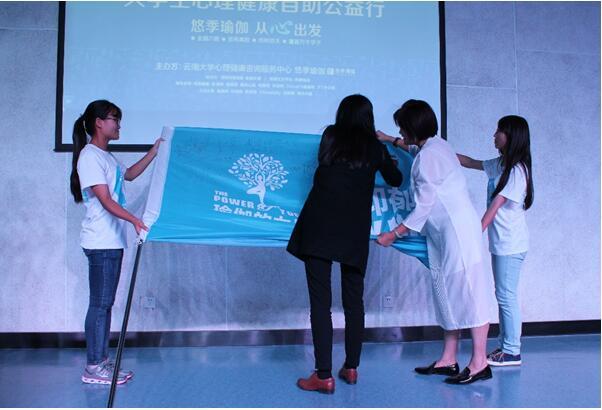 北京大学首发,一路飘扬历经北京师范大学、南开大学、清华大学、四川大学,10月20日,“瑜伽的力量——向抑郁SAY NO”战旗,如约飘至云南大学。伴随着10月19日“瑜伽的力量”四川大学锦城学院公益行的成功举办,这同时也意味着这场由悠季瑜伽主办、瑜伽文摘协办的全年最大公益行的西南之行,完美收官。