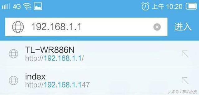 03 打开手机的浏览器,在地址栏输入192.168.1.1并打开(不同品牌路由器的登陆地址有所不同,具体可以看路由器机身底部的标注或说明书)。
