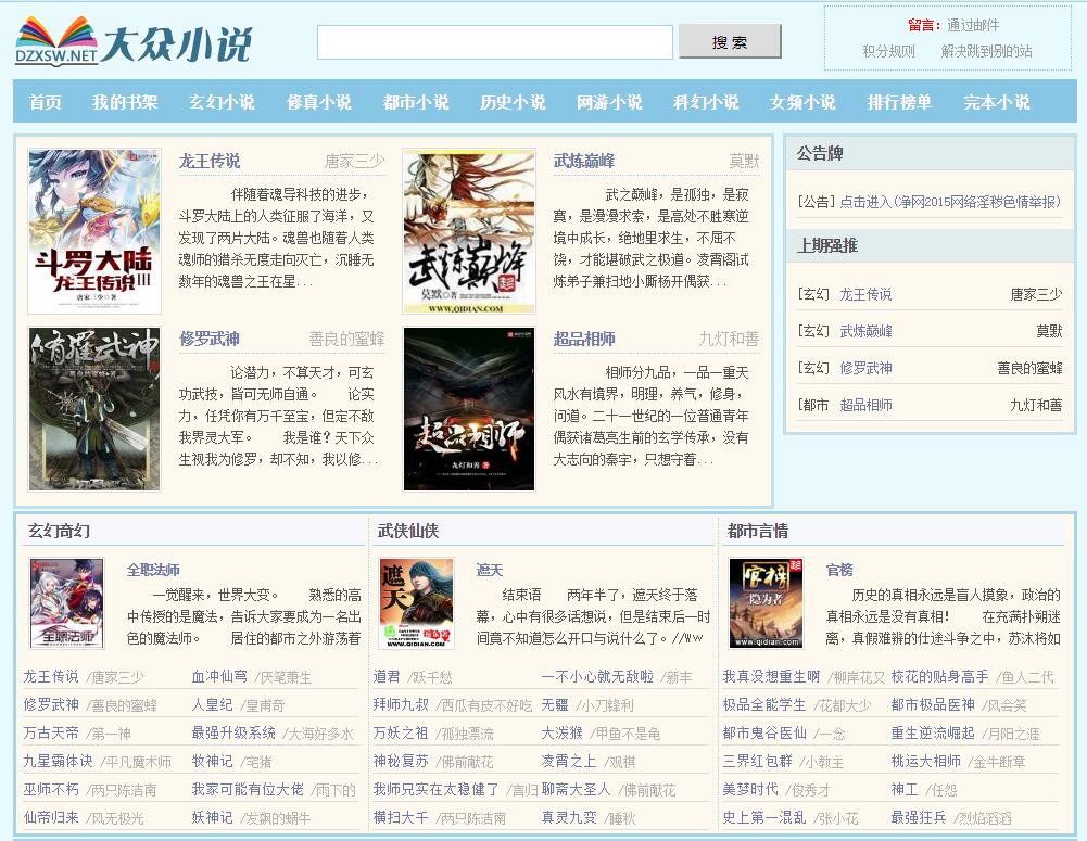 首先我们一起来简单的了解一下大众小说网www.dzxsw.net这网站。该网站是广大小说书友最值得收藏浏览的一个网络小说阅读网,网站上收藏了当前最为火热的网络小说,并且为广大的书友提供质量比较高的小说更新章节,使得读者朋友们能够阅读到最新的更新章节。网站还提供一些例如搜索、收藏、免费阅读等服务,能够为喜欢小说的朋友提供更便捷操作。