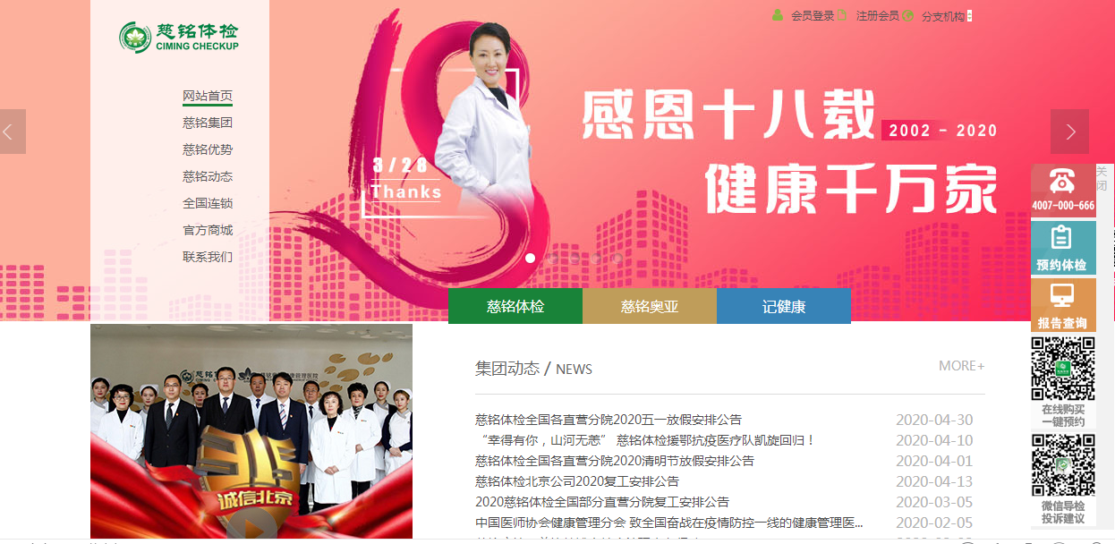 慈铭体检——提供个性化体检服务方案、健康评估、沙龙式会员管理、科学化疾病预警、健康干预、健康处方、便捷化专家门诊等服务。
