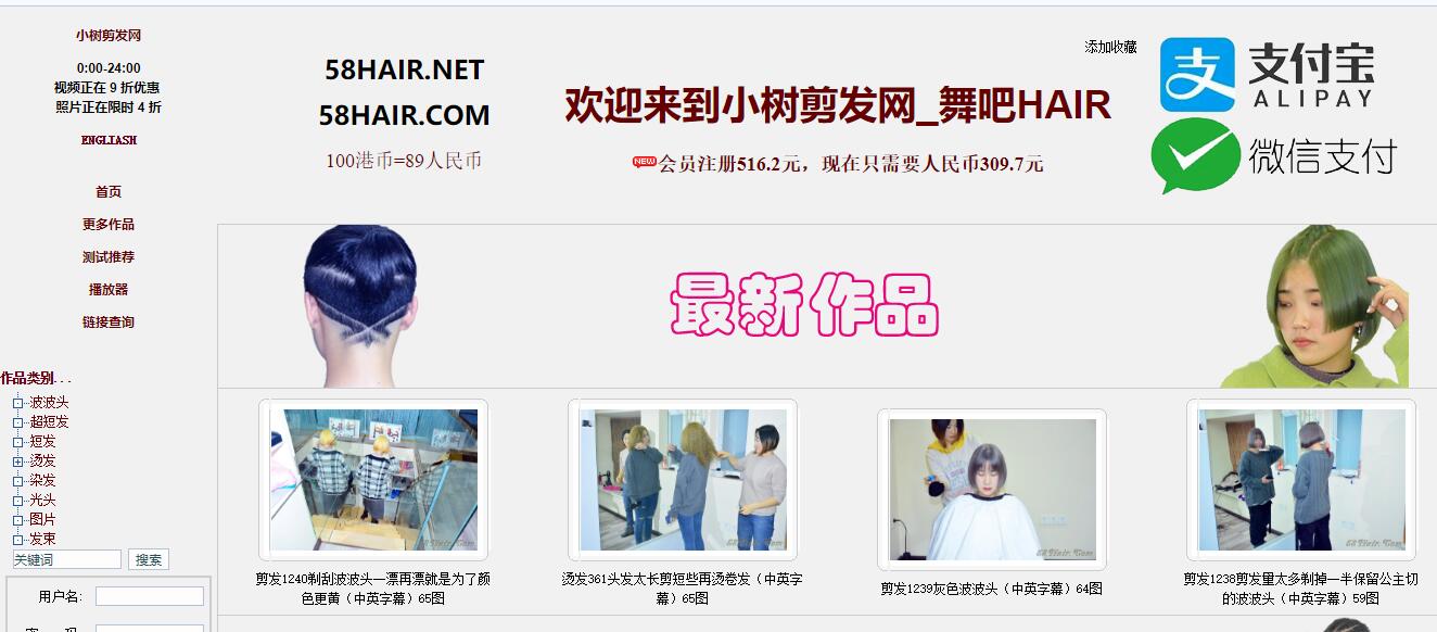 其次小树剪发网www.58hair.net有一个比较大的特色就是将真实为客户进行美发的整个过程制作成视屏和图集的形式整理了下来,视屏和图集在经过后期精心的剪辑加工配上字幕,在购买视屏或图集后我们可以清楚的看到每一个步骤,方便我们学习。