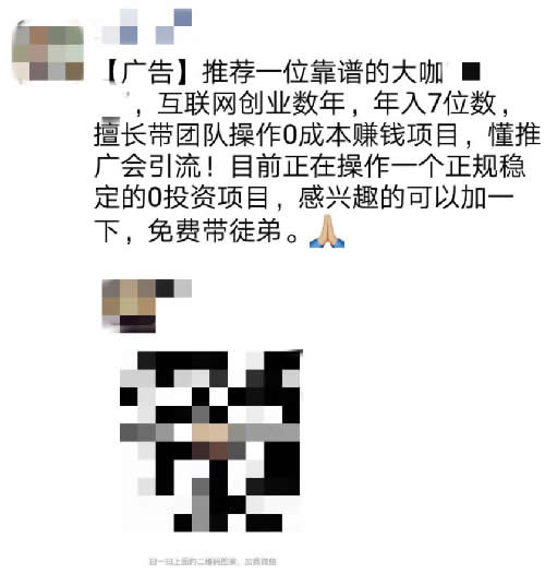 一、关于微信互推关于微信互推,相信无论是做互联网行业的朋友,还是做传统行业的朋友,应该都见过或者实践过。 对于微信号涨粉以及后续的粉丝流量变现,微信互推都称得上是一种很好的营销推广手段,尤其是互联网流量日益匮乏,流量获取成本不断提升的今天。 在微信或微信公众号的初期,很多互联网人推广简单直白的微信或者微信公众号互推,只需要随便甩出一段文案+一张微信二维码即可轻松互推涨粉,那时候大家对这种模式感觉还很新颖,也有兴趣去尝试,所以效果很好。 但是现在因为大家对这种套路习以为常了,而且见的多了也产生了抵触心理,所以效果不如从前,那么微信互推就真的不能做了吗? 当然不是。 和其他互联网项目一样,其实并不是说不能做,而是要更加专业化或者精细化运营,如果再向过去那样简单粗暴没有章法的去做注定是要淘汰出局了。 那么现在如何进行高效率的微信互推呢? 二、互推的注意事项(1)首先我举个例子: A是个卖运动鞋的,货源是福建莆田。B是服装的,货源是杭州四季青。两个人进行了一个精明的合作,因为运动鞋和服装的客户群体是相同的,如果买了衣服,是不是可以带双鞋呢? AB开始了朋友圈互推,而这种互推往往是一个双赢的结果,他们不存在竞争。 那么假如A是卖老年人养生产品的,B是卖教育用品的,若双方互推,那你会购买吗?我肯定不会选择,因为这两行的差异极大,客户群体也完全不同。 所以说,互推并不是随便找个人互推,至少应该是客户群体重叠才可以,否则只会适得其反。 (2)互推的形式注意是一句话文案+一张微信二维码。 文案尽量控制在50字以内,不能折叠,内容一般是个人介绍+利益诱饵(比如推荐一位朋友XXX,取得什么成就,现在加他微信回复XX即可免费赠送XX课程),图片只需要配一张二维码图片即可,也可以多加几张,一般不超过3张,二维码只要一张。
