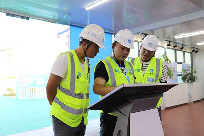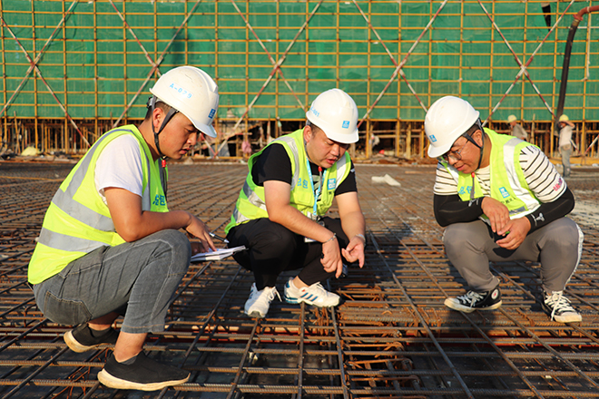 如此庞大的工程,难题不止一个。针对项目里的重点难点问题,王晋带领项目团队和一线工友们一起,在一版版的修改完善过程中具体问题具体分析,积极创新,充分利用“互联网+”施工管理理念、智慧工地管理系统等“黑科技”手段,开了几十次碰头研讨会,累计下发了138版图纸。 在项目技术负责人李树文眼中,王晋是华润东安湖体育公园三馆项目的主心骨,他从不向困难妥协,总是随身携带着航拍图,以便时刻关注每个分区的施工进度。47个分区,每个分区在他心里都有一本账。 一天施工的完成,也意味着新的开始。从晚上十点到凌晨两点,王晋组织项目班子巡查现场、记录进展、解决问题。用他自己的话说,“我的性格就是这样,与时间赛跑,不让问题过夜。” 有人带头,同事们都攒着一股子冲劲儿,一同熬夜,一同研讨方案,啃起硬骨头来没人抱怨苦累,更没人敷衍了事。 王晋的家乡是陕西西安,作为一名西北汉子,他的“硬核”作风由来已久。多年前,他在成都来福士广场项目担任工长兼项目团支部书记,为了冲击电影院结构层封顶的节点目标,他带领青年突击队亲自上阵安装埋件,连续一个月没下一线,饿了,用钢构件当桌简单用餐;累了,就用模板当席稍作休息。 春节前夕,劳务工人陆续返乡,计划在年前浇筑的T1区大悬挑钢桁架由于劳动力流失没有浇筑完毕。腊月二十九,王晋召集青年突击队员和从其他项目协调调集的劳务人员现场轮番执泵管。万家灯火下,形单影只的几个人完成了T1区悬挑部位的混凝土浇筑任务。 儿时的梦想照进现实
