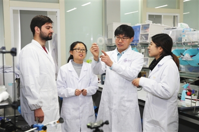 刘遵峰团队研发的弹性天线,在177%拉伸应变下,电导率远高于常规弹性导体,在120%拉伸应变下电阻只增加40%。图为刘遵峰(右二)展示弹性天线。吴军辉摄 人工肌肉、人造蜘蛛丝、弹性导体……天方夜谭般的新材料走进百姓生活—— 门口挂着漂亮的纱裙,实验台上养着蜘蛛,网兜里吊着鸡蛋……南开大学化学学院教授、博士生导师刘遵峰的实验室像极了卡通片里怪博士的实验室,到处充满了奇思妙想。 “我们利用天然纯蚕丝制备了一种新型的人工肌肉纤维,可根据人的体温出汗程度,自动调节衣袖长短;研发了超强韧人造蜘蛛丝,当遇到高层火灾时,人们可以使用人造蜘蛛丝制成的绳索缓降自救。这根特殊的绳索可以承受人体重量,缓慢拉伸且不会像橡皮筋一样快速回弹……” 听起来有些天方夜谭,他却带领团队将它们一一变成了现实。去年,《科学》《自然·通讯》《先进功能材料》等国际权威期刊发了他的多项研究成果。4月底,刘遵峰接受笔者采访时表示,目前人工肌肉软体机器人的研究已接近尾声,成果即将对外发布。 “我对未知世界充满好奇。”刘遵峰说,新型高分子功能材料研究,就是在探索世界的奥秘。 “我不喜欢跟风追热点” 如果给刘遵峰的研究贴上标签,在他同事口中出现频率最高的两个词就是“有创造性”“实用性强”。 举例来说,人工肌肉可以模拟人类、动物的肌肉进行一定的运动,在医学、航空航天等领域具有广泛的应用前景。然而,此前制备人工肌肉纤维的材料主要采用纳米碳材料等,用作衣料的话造价昂贵、工艺复杂、舒适性差。为此,他们独辟蹊径,利用天然纯蚕丝代替传统纳米碳材料,不使用化学修饰和添加剂,通过常规工业流程来制作智能衣物。再如,他们通过一种非常简单的方法,使用水凝胶纤维就能制备出人造蜘蛛丝,而且这种新材料可以达到与天然蜘蛛丝几乎相当的力学性能。 “做科研,我不跟风追热点,最喜欢的就是创新,希望通过创新性研究改变人类未来生活。”刘遵峰说,这是他一贯坚持的原则。 博士毕业后,他到荷兰莱顿大学做博士后,合作导师是曾经参与过诺贝尔获奖课题研究的杨·彼得·亚伯拉罕。亚伯拉罕教授帮他选的研究题目是纳米材料分离蛋白质,并辅助分析蛋白质的结构。 “这个课题很难,也很冷门,研究进展非常缓慢,好几年也没发表过重量级的论文。”但亚伯拉罕教授非常有耐心,不会急功近利地要求出成果。 “多年以后证明,我在莱顿大学参与的研究课题非常好。”刘遵峰说。 2018年,在《科学》杂志评选的全球十大科学进展中,亚伯拉罕教授的研究工作位列其中,被认为是“一项可以进一步改变人类命运的研究”。“比如现在开发一种新药,需要先看清蛋白质结构,当初的研究开创了一种新的方法来分析蛋白质的结构问题。”刘遵峰说。 欧洲留学的这段经历,让他更深切感受到:“创新性研究最为艰难,但也是最有意义的。不急功近利的坚守,才是科研创新之道。” 一条主线、多方拓展的科研模式 “进行创新性研究,除了看书学习理论,还要与实际相结合。”刘遵峰说。 2013年,他到美国做访问学者,开始接触智能材料,研究思路是如何通过材料的新性质带来创新性的应用,这让他的研究与实际更加紧密地联系在一起,也帮他树立了现在的科研创新主线——通过分析利用材料的特殊结构,发现材料的新性能。 几年间,刘遵峰从事的“扭热制冷”“超强韧人造蜘蛛丝”“人工肌肉”等研究都是围绕这一主线,均取得了不错的成果。 “这几个看似不搭界的研究用途不一样,但结构一致,都是主线的拓展。”刘遵峰认为,创新研究就像一棵大树,有了牢固的根基,有很多枝杈才能枝繁叶茂,枝杈多了发现新现象的可能性也会增加。另一方面,与现实生活相关的科研大多需要多学科交叉,特别是一个创新性研究,可能需要解决很多方面的问题才行。这种一条主线、多方拓展的科研模式,有利于建立良好的创新科研生态。 在刘遵峰这几项研究中,除了用到和他本专业相关的化学、材料学知识,还大量应用物理、数学、生物等学科知识。“对科研人员来说,多学科交叉是一个趋势,这就要求知识面广阔。” 这还非常挑战着人的意志力。“最怕就是数据出问题,还找不到原因。” 研究“扭热制冷”项目时遇到的困难,刘遵峰至今记忆犹新,“我们当时测出‘扭热制冷’拉长7倍的橡胶收缩降温为12.2摄氏度。如果将伸长和加捻均释放,该‘扭热制冷’降温可以达到16.4摄氏度。这个数据一直很准确稳定,6月份就在我们准备撰写论文的时候,我们发现数据变化了,相差1—2摄氏度”。 学生王润“吐槽”,平日里和蔼的刘遵峰“搞起科研来不留任何情面”。“发现数据有变化,刘老师带着我们找原因。排查机器有没有问题,样品制备是否重复,操作手法规不规范,计算是否出现了错误,一一排除后,研究还是陷入了僵局。”王润说。 到了9月份,实验数据又突然正常了。 “我们一开始也是百思不得其解,甚至怀疑我们之前的测试数据不准确。后来才发现,原来是天津的夏天湿度大,造成实验数据发生了变化。”刘遵峰说,为了获得重复数据,折腾几个月很正常。 “我并不是老师眼里的学霸” 主持多个国家自然科学基金项目,成果“弹性导体”入选美国《发现杂志》2015年度全球Top 100科学发现……在很多人眼里,刘遵峰拥有令人羡慕的简