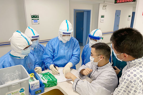 杜斌为病人插管(视频截图) 他也会帮护士给病人吸痰、换床单,用行动告诉他们:“我和你们在一起。” “让更多的病人获益” 作为中央赴湖北指导组专家组成员,杜斌的责任不只是在一线抢救危重病人,他还要投入精力与全国的同行们探索诊疗方案。因为白天太忙,跟外地专家的沟通探讨多半在晚上进行。 既是临床医生,又是专家组成员,杜斌知道这意味着身上的担子更重。“万一判断是错的,影响到的就是对更多人的治疗过程。最重要的不是去决定一个人的生死,而是当你的决定能够影响一群人的生死的时候。” 为了提高治愈率,降低病亡率,在一线救治过程中,杜斌等专家组成员不断总结经验,摸索治疗新冠肺炎的有效手段。在他们的努力下,新冠肺炎诊疗方案更新了七版。但对于新冠肺炎,还有太多的未知留给医务人员和科研工作者去探寻。