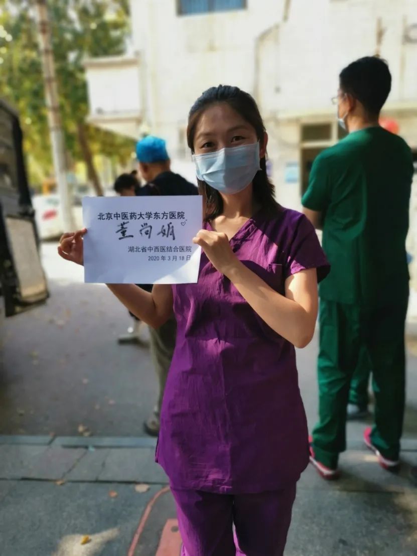 回到北京当晚,董尚娟家人驱车赶到医疗队定点隔离休养和医学观察的酒店附近。从出发那天算起,她和家人已经整整59天没有见面了。虽然不能近距离靠近,甚至可能连面都见不着,家人们还是执意开车在酒店一侧的马路上碰碰运气。 “看到了吗?我在这里!” 北京中医药大学东方医院呼吸科主治医师董尚娟打开一扇酒店的窗户,高高的楼层之上有一团手电筒的光亮,她挥舞着手机大声呼喊。这一幕,像极了她和同事们在医院楼下操场拍集体照的场景。当时周围楼里的居民都自发跑到阳台上,打开窗户向他们挥手“谢谢你们,欢迎再来武汉!”在湖北省中西医结合医院的日子里,董尚娟每天都“打了鸡血” 似地救治重症病人,可听到居民的声音后,她终于憋不住哭了出来。他和同事们拉着手集体向他们鞠躬感谢:“大家一起加油!” “心里很不舍!”3月24日晚11点左右,董尚娟收到领队发布的返京消息,考虑到北京境外输入病例不断增加,当天新闻也报道了武汉解封的时间是4月8日,她说那时以为返京的日期可能会被推迟。“没想到第二天收到了确切消息,包括车次和座位号。”她说确认这个消息后很激动,但心里也有放心不下的患者。 收到通知那天是大年初二,董尚娟正和爱人去她父母家的路上。“我作为呼吸科的大夫,又是党员,肯定得冲在前面,另外我还没有孩子,家里负担也小。”这是她年前报名的理由。她在路上随即给父母打了个电话说不能陪他们过年了。收拾行李时,董尚娟的爱人专程往她箱子里塞了一个红包,“今年是本命年,带着吧!”