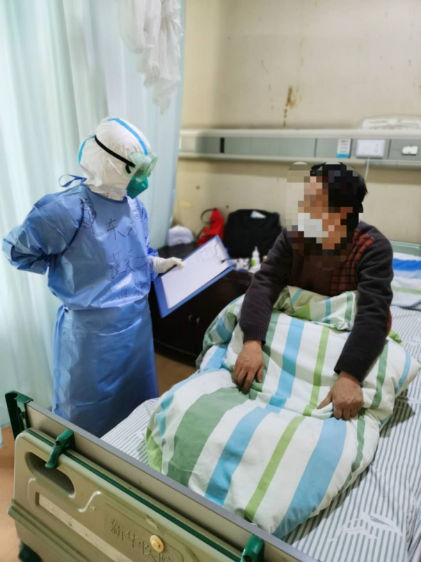 因从业的时间相对比较长,董尚娟在出发前并没有过多慌乱。但当到达武汉后,她被眼前的一幕震惊到了:“路上没有一辆私家车,感觉像一座空城。” 尤其是在医院期间,任何工作都要穿着防护服、隔离服,戴着口罩、护目镜等严密包裹下进行,平时很正常的工作,在隔离病房内也变得不那么容易了。“多说几句话,多走两步,就会气短,护目镜上就会结水雾、水汽。” 董尚娟问诊过一位40多岁的男患者,他父母因新冠肺炎在一周内相继不幸去世。出于专业角度考虑,董尚娟格外关注这位患者情绪,每次查房都会和他多说上几句。“来,让我看看今天的饭都有什么呀?今天的饭菜好香啊,你可得多吃点儿,能补充免疫力的。”董尚娟尽量说着一些安慰的话转移他注意力。一周后,这名患者出院,但一系列的打击让他变得沉默寡言,“希望他在以后的日子里能坚强。”