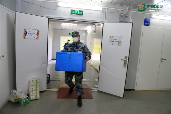苏昱亚在病区送餐。 在火神山医院,因为负责患者的伙食保障,他被大家称为火神山上的“火头军”。统计每天动态就餐人数、提前与餐饮公司对接保障需求、为患者分发饭菜……这是他每天的主要工作。 “护士,麻烦接一下饭,今天有南瓜粥。”每天早晨六点半,苏昱亚就开始忙碌起来:在病区门口将病号餐从车上抬下来,按照前一天晚上制定的分发表,重新分类装箱,逐一核对后运送到各病区,通过传递窗口送至每名患者。
