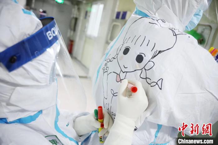 “大白”上的创作。 仁济医院供图 葛医生透露,穿着防护服也有很多欢乐,“特别是五短身材的人心中更是暗自窃喜:饶你花容月貌、魔鬼身材,套上“大白”也立刻和尔等一样变成‘土肥圆’。”葛恒幽默地说,“如果加上个3级防护,就算维密超模也瞬间变成米其林轮胎的模样。” 据介绍,呼吸道疾病的感染防护分为三级:1级适用于一般呼吸道或发热门诊的医护人员:在工作服外穿手术隔离衣,戴一次性医用帽、外科口罩和手套;2级防护适用于直接面对患者,但不进行侵入性操作的医护人员:穿手术衣,外套俗称“大白”的连体式医用防护服,佩戴医用级N95口罩、护目镜及面屏,可以有效阻隔飞沫对呼吸道和眼部粘膜的直接侵袭。