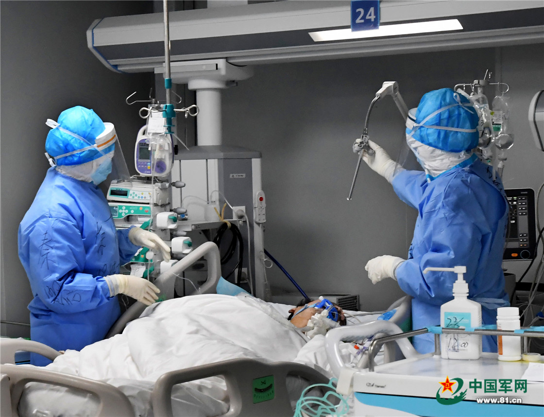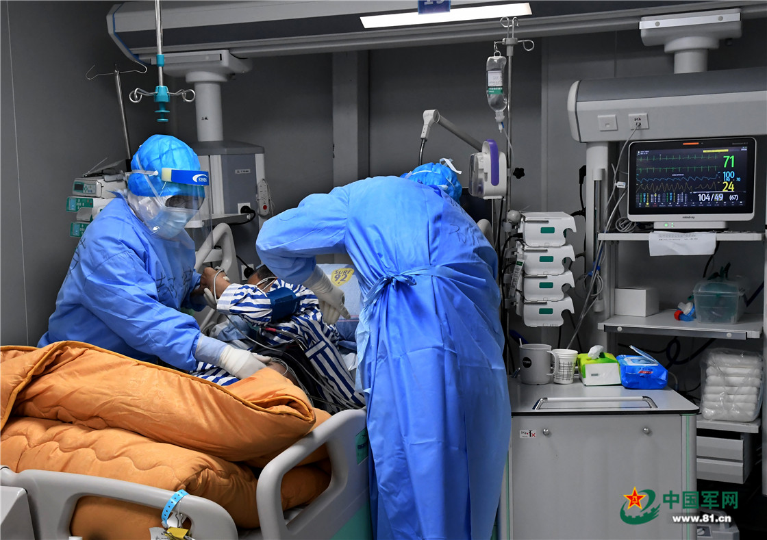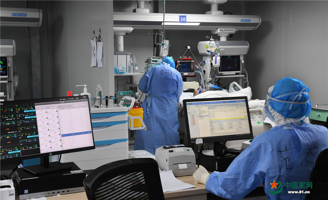 医护人员监控观察患者的病情变化。解放军报记者 王传顺 摄