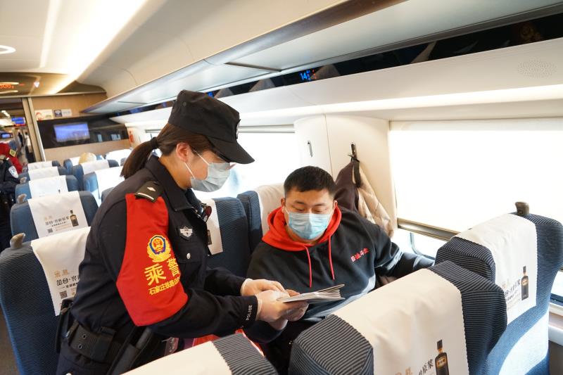 央视网消息:疫情面前,许多女警坚守在疫情防控一线的岗位上,用行动为抗击疫情贡献着巾帼力量。她们是阻击疫情的战地红花,更是战“疫”一线的铿锵玫瑰。在石家庄公安处乘警支队有这样一对女警师徒。她们在飞驰的列车上携手作战,共同抗疫,用自己的实际行动守护着旅客的健康安全。 边帮边带 师徒共同值乘 “师傅”武云蕾,从警五年来一直在乘警支队担当乘警工作,从南到北,从东到西,从普速到高铁,几年间她值乘过的车次也有十几个,积累了较为丰富的值乘经验。疫情发生后,武云蕾作为党员,第一时间向党支部递交了《请战书》,主动要求在休班时间上车添乘,协助同事做好疫情防控工作,希望能为打赢疫情防控阻击战奉献自己的力量。“徒弟”邢雅洁入警4年,但她是今年春运前才刚刚加入乘警支队,在列车值乘上还是个新手,而且刚上岗没多久,武汉发生了疫情。为了帮助邢雅洁迅速适应特殊时期的值乘工作,支队让武云蕾做她的师傅,边帮边带,共同完成值乘任务。就这样,这对女警师徒携手开始了她们的高铁战“疫”。 “列车是一个移动的”小社会“。作为乘警,我们的职责就是维护好列车的治安秩序,为旅客创造一种安全有序的乘车环境。这就需要腿勤点儿,嘴勤点儿,多巡视,多检查,多询问。”虽然两人年龄、警龄都差不多,但当了“师傅”的武云蕾,总感觉自己身上责任重大,常常把自己这些年值乘的体悟和如何处理列车上遇到各种情况,对“小徒弟”倾囊相授。邢雅洁知道自己在值乘高铁上还是个“菜鸟”,对武云蕾的“指点”也是虚心受教。仅仅一个多月的时间,凭借着武云蕾的耐心教导,安检查危、检查消防隐患、车厢巡视,邢雅洁对乘警各项作业标准流程十分熟悉,不但具备单独值乘的能力,疫情防控工作也是做得十分到位。对此,邢雅洁对师傅武云蕾很是感激:咱们虽然年纪相仿,但你就是我的师傅,我能这么快的进入乘警角色,离不开你的帮助和指导。 师徒两人处置工作配合默契 武云蕾和邢雅洁在值乘期间,每次都是按时到达值班室,接受测温,领取防护用品,学习相关文件,互相检查防护用品的佩戴情况,因为她们知道,“只有保护好自己才能保护好旅客”。自疫情发生以来,她们除了巡视车厢,检查车内的消防设施,反恐装备以外,还要对旅客做好疫情防控宣传。两个人在工作中结下了深厚的友情,配合起来也十分默契。