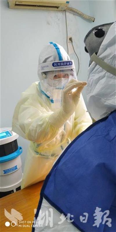 “耐心跟患者沟通,是我的杀手锏” 采访时,一位中年男士,在门口来回踱步了很久,迟迟不愿踏入采样室。 细心的护士梅池当即喊住了他。原来,这位男士CT检查正常,需做核酸进一步检测筛查,但他认为核酸采集室空间狭小,进出多为疑似或确诊发热病人,风险高,担心摘下口罩会被感染。 梅池耐心解释:“放心吧!我们这里空气消毒机一直持续工作,核酸室通风情况很好,如果您还有担忧可等我准备好后再取口罩。”随后,梅池当着男士的面,上上下下、仔仔细细又将采样室进行消毒。“您看,还有什么顾虑,可以直说。我都可以解释给您听。” 这些举动不仅消除了男士对病毒的恐惧,也拉近了距离。 这位男士依旧有些害怕,深呼吸多次后终于慢慢摘下口罩。可每当梅池把采样拭子伸进他口腔里时,他都会用舌头顶住并往后退缩。见重复操作多次不成功,梅池笑着说:“没关系,你试着坚持一次,不然越往后你会越难受。”终于,在他再次张口后那一刻,梅池迅速放入采样拭子,并不停地鼓励他“坚持、对了、很好”。 顺利完成了采样,男士离开前向梅池敬了个礼,说:“谢谢,你们要保护好自己。” 27岁的梅池调皮地说:“好温暖!对患者耐心引导和沟通,是我的杀手锏!”
