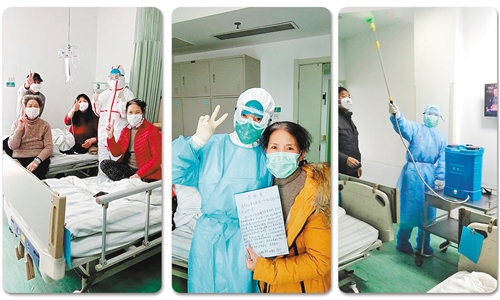 左图:王昭军晕倒后,返回岗位,向她负责的病人报平安。 中图:25床患者痊愈出院,留下一封感谢信。 右图:王昭军在进行病房消杀工作。 (资料图片) 29床宋晓波民警: 病好了还想献血浆 29床的宋晓波是个民警。出院以后,有一天他突然问我哪里可以捐献血浆?病好了以后还想着来捐献血浆,我觉得他很伟大。当时就问了我们医院的领导,想报道一下,让广大康复患者也能像他一样来捐献血浆。 刚开始,宋晓波不愿意接受采访。我就劝他,在这个非常时期,报道他可以正面地引导大家,为国家、为社会作点贡献,非常有意义。后来,他终于接受了采访。前两天报道发出来了,我很感动! 我的工作也很平凡,不想被很多人知道。但后来想到,如果有人看了关于我的报道,能够感受到温暖和信心,那就太好了!因为我的病人们太可爱了,我觉得特别暖心! 25床周和平阿姨: 像妈妈一样宠我 那天我晕倒的时候,正好打针打到25床的周和平阿姨那里。当时,我可能有点虚脱,觉得有点懵,打了一针不知道打没打进去,我还以为是护目镜糊住了。我就跟阿姨说:“不好意思阿姨,我没打好。”阿姨说:“没事没事,你怎么了孩子,是不是不舒服啊?”我说还好,就是有点喘不上气。然后听到旁边的爹爹叫人来救我,再后来就没有意识了。听同事们说,当时给我脱掉防护服,身上全都湿透了,冰凉冰凉的,指脉氧测不出来,血压也测不出来,她们吓坏了,赶快将我用被子包起来,给我吸氧、输液……到11点多才慢慢缓了过来。 第二天我休息了一天,虽然同事说已经向病人们报了平安,可我心里总想着亲自去跟他们说一声,怕他们恐慌:怎么上着班就倒下去了?没想到我到了病房,阿姨看见我就哭起来了。病人因为担心我哭成这个样子,上班这么多年还是第一次。当时我们两个都哭了,我也觉得感触特别深。那时候我管这个病房的时间还不是很长,没想到在她自己都生病的时候,居然还会这么想着我。 周和平阿姨住院的时候身体和心情其实不太好,老是想着家里的人。后来,跟她差不多同一天进来的24床的婆婆核酸检测转阴了,她就有点着急,问我:“我怎么还不转阴啊?”我就安慰她,经常跟她聊天,说说她的孙子啊,跟她讲只要没有恶化就是好消息,等等。后来她出院了,到现在每天早上还给我发微信,一天都不落。经常对我说:宝贝早上好啊!工作怎么样啊?身体怎么样啊?她很喜欢叫我宝贝,就像对着自己的孩子。我也很长时间没见到妈妈了,只能和妈妈视频通话,看着她就像看到了妈妈。 很多时候感觉我的病人们都特别宠我。我跟他们说我31岁了,结婚有孩子了,他们还是把我当小孩。