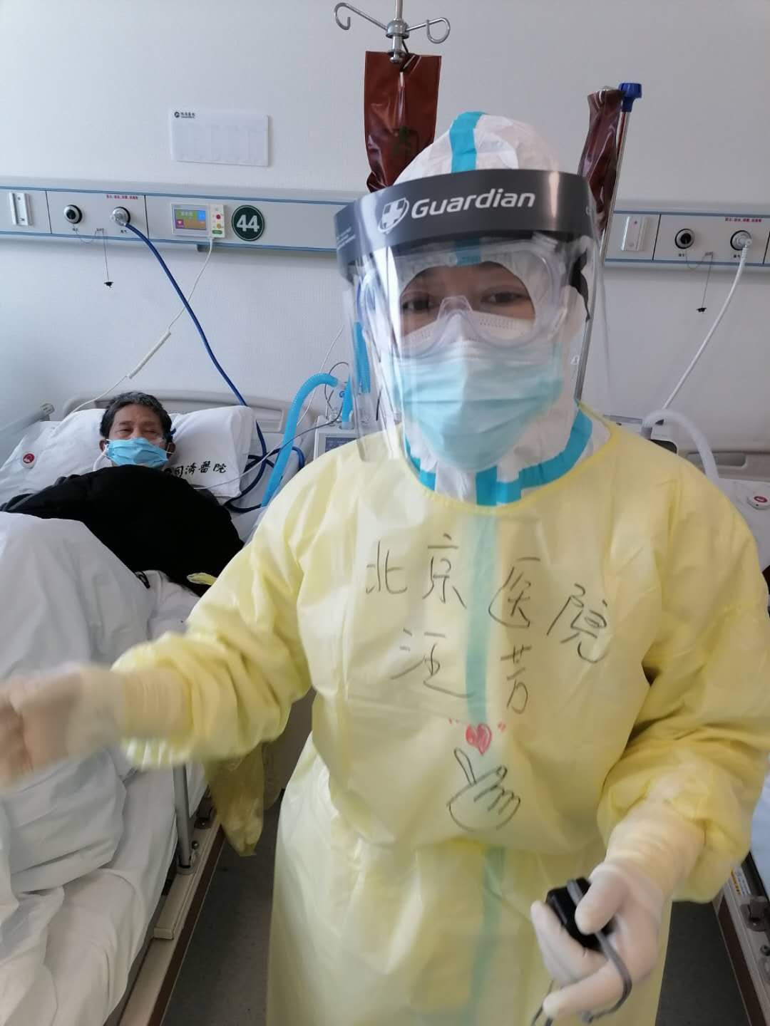 汪芳 受访者供图 “我们刚接手,哗啦转来一大批人。人躺在什么地方的都有。我们忙着一个床一个床地插管,那一晚上,净插管了!”回忆起2月8、9日刚驰援武汉同济医院中法新区的第一个夜晚,即便身经百战的汪芳教授仍心有余悸。 “每个病友都熟悉我的声音” 汪芳是北京医院心血管内科副主任,北京协和医学院的教授、博导,北京医院援鄂抗疫国家医疗队第二批队员。 3月4日,是汪芳援鄂第26天。患者陆续在出院。连续好几天都是床等人。 “大家好啊,今天感觉怎么样?”一进病房,汪芳习惯性地跟大家打个招呼。 34床的患者“扑棱”一下坐了起来,一把搭住汪芳的胳膊:“真是汪主任啊!你们戴着面罩我总怕认错。” 患者一激动,血压瞬间升高了。汪芳一见连忙安抚:“躺下,躺下,慢慢说。” 36床患者也跟着站了起来:“汪主任,你终于来看我们啦,怎么感觉好几天没见着你了。” “昨天晚上汪主任刚来过,”35床患者说,“她来的时候你去做CT了。后来他们大夫忙了一宿,都在危重房间抢救没出来。” 汪芳对这三个挨一起的患者印象深刻。刚入院时,她们已是危重症,而今即将病愈出院,人明显活泛了,相互之间开开玩笑、逗逗闷子。 34床患者两个多月前从襄阳来到武汉同济医院,进行腰椎间盘滑脱手术。手术虽然非常成功,却赶上了疫情暴发,自己被确诊,女儿也因此被隔离。2月9日,她住进同济医院中法病区时,觉得自己很倒霉。 对此,汪芳看在眼里,记在心上,随即嘱咐护士们对她多关心一些,自己查房时,也会多跟她聊聊天,鼓励她。 “2月29日晚上,我们护士长李磊穿着厚重的防护服,蹲在地上帮她洗脚,让她很感动。”汪芳说,“我们负责的病区有48张床。在病区,我们都穿着防护服,戴着面罩,他们都不知道我们的样子。但是,每个病人都熟悉我的声音。”汪芳说。 “35床患者一头华发,很有气质。原来,她曾是某妇幼保健院的院长,不愧是学医的,特别愿意跟我们交流,积极乐观,心态很好,康复也就特别快。”