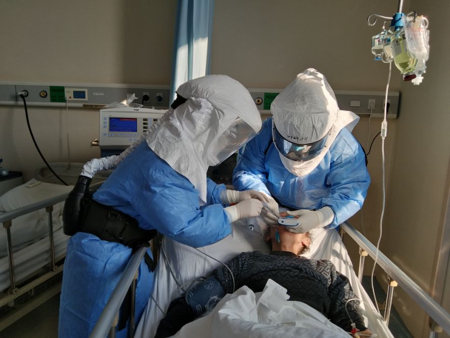 其次,因为新冠肺炎的重症病人耐受时间短,对医护人员也必须减少暴露时间,平常3-5分钟的插管时间,现在必须在两分钟内完成。看到病人痛苦无助的样子,凌肯没有时间害怕,在陈向东的指导下,他迅速冷静,与同事两人,一个推麻药,一个负责插管。整个过程麻利干脆,用时90秒。除去60秒打麻药的过程,真正插管只用了30秒。