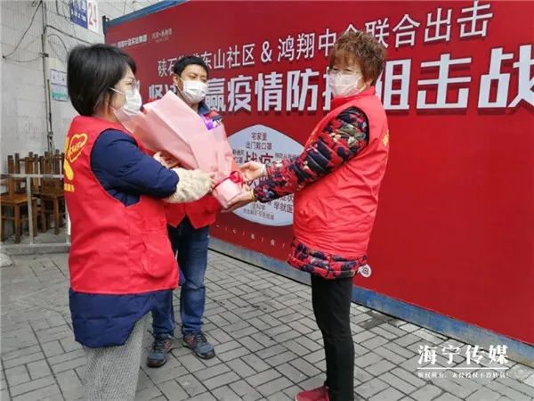 面对来势汹汹的疫情,长安农贸市场作为“保供应”的重要一环,严格落实应急政策,在确保安全情况下每天营业。 市场不关门,高静不休息。每天完成食材抽样检测后,她就穿上红马甲当起志愿者,在市场入口处为居民测量体温、登记身份信息、查看健康码,确保人员的安全。 连续30多天,只要有空,她还主动参与到社区防疫志愿工作中去。卡点上,她身着红马甲站岗执勤;冷风中,她劝诫不配合人员,耐心细致……她还多次给社区其他志愿者送泡面、饼干等物资。 她在服务点过66岁生日 “谢阿姨,生日快乐!”2月27日,东山社区党委书记万莹洁一行人带着鲜花、长寿面和满满的祝福来到吴家廊下服务点,为在此服务的志愿者谢成英送上生日祝福。捧着热气腾腾的长寿面,谢阿姨止不住的说着感谢。