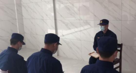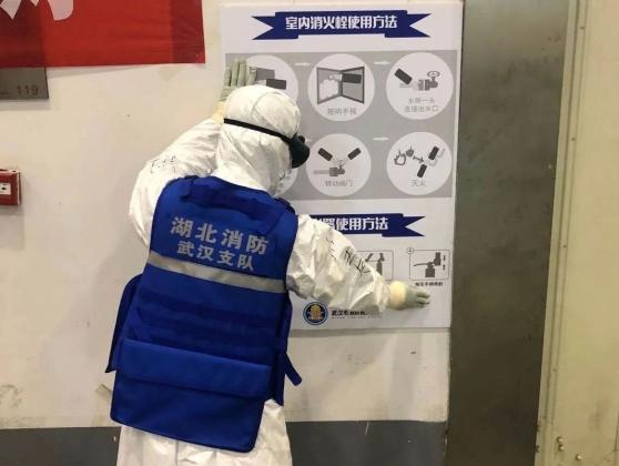 “嘘……”随着一声尖锐的哨声,清晨6时30分,突击队全员迅速起床、穿衣、佩戴口罩、测量体温,突击队长刘江在工作日志上认真记下最后一名队员的体温“36.4度,正常”。早餐后,刘江组织大家召开简短会议,布置当日人员分工,进行安全形势分析,清点进舱作业装备。根据前一天的约定,上午9时整,刘江和突击队到达方舱医院外部与医院管辖大队防火监督突击队汇合,确定工作流程,配齐防护装备,确保无任何部位暴露在外后,进舱!