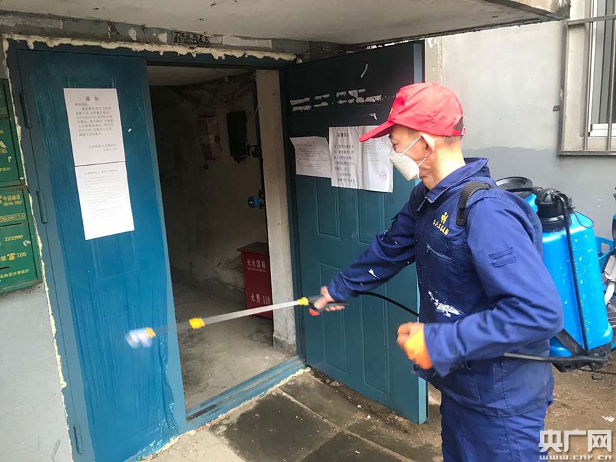 这支志愿者服务团队由7名进城务工人员组成 平均年龄26岁 队长景亚栋费了很多周折 自购了30桶高浓缩84消毒液和5台专业喷雾器 每天带领队员在各个街巷实施消杀