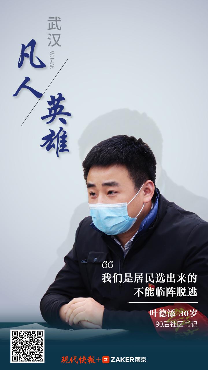姓名:叶德添 年龄:30 岁 身份:江岸区大智街道铭新社区党总支书记、居委会主任