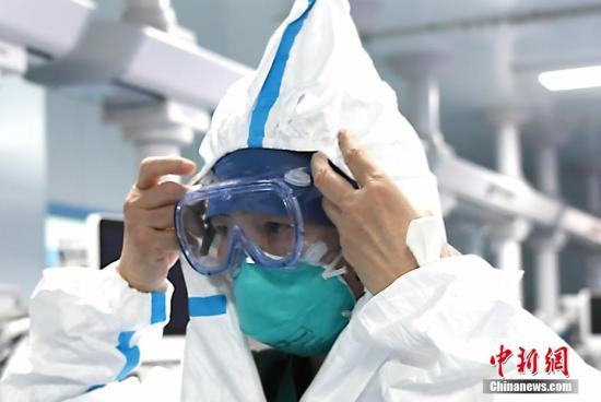 图为李兰娟院士在戴护目镜。中新社记者 安源 摄 她全身被白色防护服裹严,仅露出护目镜下的双眼。助手在其防护服前胸和后背用马克笔写上姓名帮助辨认。为鼓舞同事士气,她建议在后背名字下方添上“加油”二字及感叹号。这天正巧是其团队成员张园园生日。李兰娟拿过笔来,特意在她衣服上写下“祝园园生日快乐”。 戴上两层手套扎紧袖口、撕开防护衣胸前封条粘紧缝隙、盖上防护面罩……10多道措施检查完毕,李兰娟的防护达到“红区”查房标准。