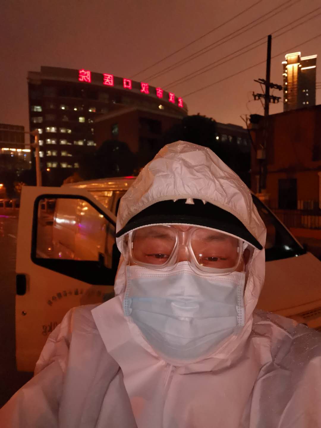 王禾田与他所驾驶的社区转运车 上岗的第一天,我还是有点担心的,走出家门前虽然考虑到了有一定危险,但是在服务过程中才慢慢意识到,生活中原本琐碎的事情竟也会给我带来困扰。 我的职责是从社区接送新冠肺炎确诊患者前往各个医院治疗,由于日常接触高风险人群,为了与家人隔离开,我休息的时候只能借住在朋友的空房子里。我记得2月6日,我工作到凌晨两点多,刚刚转运了两名患者。当我开车到自己家楼下,脱去防护服时,才想起不能回家。由于第二天上午还要去街道办公地点报到,我就在车上将就睡了几个小时。 我开的车是政府给街道配的面包车,把车内的座椅拆掉后放置了几个板凳,空间更大也便于消毒。接送的患者时,他们常会出现情绪焦躁、恐慌,他们担心自己的病情。我只能耐心地安抚他们,开导他们,尽自己最大的努力让他们心安。 这些天来,我开车带着社区的患者跑遍了汉口所有的定点医院。由于车内空间密闭,我也担心被传染,每天都在高度紧张状态下。在车内穿着防护服,戴着口罩,戴不戴护目镜成了最大的问题——不戴吧,又担心自己的安全没有保障,戴上的话视野受影响,开车不安全。 为此,我只能把护目镜摘下来,尽量在行车过程中把窗户放下来吹着风,让空气流通,避免交叉感染。虽然有点冷,但起码能保证行车安全。精神时刻紧绷,尽量多的消毒,尽可能不近距离接触乘客。 然而,一方面为自己顾虑,但另一方面,看到一些行动迟缓的老人,我又忍不住去伸手帮忙,常常让我陷入两难。2月10日凌晨一点多,我转运了一趟患者,本来给自己定的规矩是不下车的,可当我看到他们那般无助,又于心不忍。他们大包小包拎着,有家人却不能陪同,我还是忍不住下车去帮他们一把。 回过头想,我也会很觉得这样近距离的接触很危险,担心自己会不会被传染,总感觉自己是不是在发烧,每天都要量几次体温,我都觉得自己有点“神经质”了。