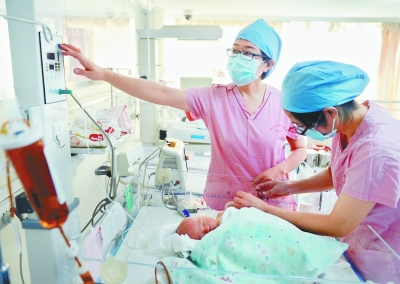 海淀妇幼儿科主任雷燕喆(左)。本报记者 安旭东摄 海淀区妇幼保健院产科,三区主任蒋红清刚刚完成三台剖宫产手术,她看了眼表,凌晨4时35分。 蒋红清正要歇口气,就听到护士喊,“主任,产房里产妇出血量超过400毫升了。” 蒋红清抬腿冲出手术室,直奔产房。 产床上,身形瘦弱娇小的产妇刚刚生下一个大体重宝宝,还没来得及多看一眼宝宝,就发生大出血。短短十几分钟,产妇出血量达500毫升。 “启动‘二级预警’!”蒋红清下达指令,排查出血原因、评估危险程度、做出抢救方案……医护人员忙而不乱。这套抢救流程,她们平日已演练多次,为的就是和时间赛跑,抢救生命。 不到半小时,产妇出血量已达1000毫升,她的脸色,苍白得吓人。由于产妇孕期血红蛋白偏低,病情存在大出血导致凝血功能障碍的恶性循环风险,抢救团队果断决定持续按摩子宫、运用宫缩剂和容量复苏的同时,给产妇放置宫腔止血水囊。 抢救持续了40多分钟,大出血终于止住,产妇的生命体征渐渐平稳下来。但她的失血量已达1500毫升,急需输血。 患者是AB型血,新冠肺炎疫情的特殊时期,血源紧张。作为专科医院,海淀区妇幼保健院自己的血库中,AB型血的常规配备血量只有400毫升。好在产科已启动“二级预警”,检验科通过医院的中心系统发出申请,随时待命的救护车立刻奔向北太平庄中心血库取血。短短半小时,加配血已送到产妇床前。 产后出血,最怕低体温,保持体温对于救治脱险十分重要。冰冷的血袋被护士们揣进怀里,用体温温暖,使冷藏保存的加配血升温。 疼痛、虚弱,产床上的产妇目光游离,一句话也不说。 “别害怕,您没事!” 蒋红清安慰着产妇,语音轻柔。“虽然您出血挺多的,但我们采取有效的止血措施,输血也非常及时,现在只是有些轻度贫血,不会造成什么远期并发症。经过我们专家的会诊评估,您的各脏器功能都没有受到损伤,用的药物也不会影响您此后的母乳喂养。”听着蒋红清讲解的救治过程,产妇的眼睛里渐渐生动起来。 “宝宝挺好的,已经回到病房了。”这句话仿佛一针强心剂,新妈妈的眼中泪水滑落,但嘴角微微翘起。 另一张产床上,助产士邬春雨也忙碌着,一位产妇已进入第二产程。 “没事的,放轻松。你看,我们这些医生、护士都在这儿陪着您呢!” 邬春雨安抚着产妇。由于新冠肺炎疫情防控的原因,海淀区妇幼保健院产房取消了家属陪产项目,邬春雨等医护人员承担起安抚产妇的“重担”。 “深吸气,憋住了,使劲儿!”…… 40多分钟后,产妇顺利娩出一个8斤重的“大胖闺女”,母女平安。“来吃点东西。” 邬春雨将提前准备好的食物喂给产妇,以防止产妇虚脱和低血糖。 “来,快看看你的宝宝!”望着自己的女儿,新妈妈喜极而泣。 这一夜,海淀区妇幼保健院产科,共收诊20位急诊患者,完成3台剖宫产手术,6位产妇顺产新生儿。 “这不算什么,我们产科最高的记录,一夜有20几个宝宝出生。”蒋红清的声音听起来很轻松,其实她已忙碌了一天一夜。 “累,是肯定累。” 蒋红清说着,按了按腰,“现在是特殊时期,很多医生支援武汉,支援防疫第一线,我们更要守好自己的阵地,迎接新生命,守护好大人和孩子的安全。” 蒋红清说着,脸上露出了笑意,“大家别怕,有我们陪着您呢!” |