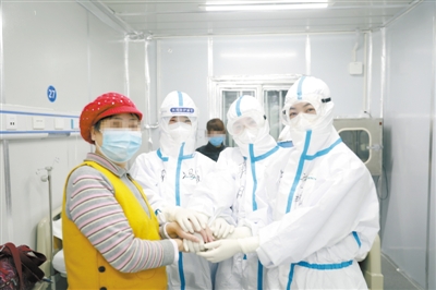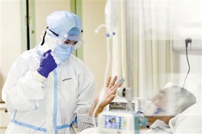 2月16日,武汉雷神山医院病房,新入院患者与医护人员相互鼓劲加油。新华社发(高翔摄) “由于防护服不透气,工作量比较大,浑身出汗,防护服湿了又干、干了又湿,汗液已经把身体的水分无情‘榨干’。” 战疫一线有种另类“神器” 2月16日 武汉人民医院东院区 晴 武荧荧 山东大学齐鲁医院内科专业护师 在普通人眼中,新闻上出现的医护人员为了不浪费防护服,减少感染几率,忍着8小时不上厕所,这种行为让人震惊又敬佩,但处于特殊时期,我们医护人员已经把它当成理所应当的了。 在出发之前,根据一线战友们的经验心得,万海燕护士长为我们列了所需物品清单,成人纸尿裤便是其中之一,我想大部分援鄂医务人员的行李箱中都有这么一件防护“神器”。也许很多人不了解,为什么要穿纸尿裤?因为防护服为一次性连体设置,如果上厕所的话,就要重新更换一套,穿脱防护服实在是太麻烦了!穿一次防护服需要20分钟左右,而脱一次至少需要半个小时以上,还会造成防护资源的浪费。在隔离病房可以不喝水,可以不吃饭,可人有三急,怎么能不上厕所呢?于是,成人纸尿裤便成了我们的防护“神器”之一。 在第一次进入病区之前一小时,我便没有喝水吃东西,但为了以防万一,还是穿上了纸尿裤。幸运的是纸尿裤“神器”也没派上用场。由于防护服不透气,工作量比较大,浑身出汗,防护服湿了又干、干了又湿,汗液已经把身体的水分无情“榨干”。成人纸尿裤也是消耗品,而齐鲁医院的后方保障总是那么及时,老家医院的同事们一直在给我们运送物资,才让我们在前线没有后顾之忧。 作为抗疫路上的“逆行者”,特殊时期总要有特殊的办法,穿上纸尿裤的我们并不丢人,依然是最美丽的战士。 “在这个特殊的时期,特殊的病区,我们不仅仅是去救助,更多的要去陪伴,去倾听,去交流。” 医患永远是战友 2月16日 武汉江夏区第一人民医院 晴 周童 核工业总医院呼吸科副主任医师 今天晚上查房不轻松,原本只想把重点病人过一遍,但是走进病房,几乎所有的病人都有这样那样的疑问。 “医生,我怎么还发热啊?”“医生,我今天早上抽血的结果怎么样啊?”“医生,这是我的CT片,你再帮我看看?”“医生,能帮我把地上的袋子放到椅子上吗?” 其实,经我诊治的大部分病人都并非重症,没有太严重的问题,无需特殊处理。但是,从他们的眼神中我可以看出祈求、期盼和希望。 我则耐心地一一回复着他们。 “阿姨,没事的,体温虽然有点波动,但是总体趋势还是往下走的,耐心点!”“大姐,检查的结果基本还是满意的,但是不能大意,还是要坚持,营养要加强,适当活动,不要经常躺在床上!”“小伙子,你这个CT和前面相比,炎症范围没有扩大,但是吸收还是有点慢,还需要治疗一段时间,别着急!”“老太太,你这个氧气管一定要戴在鼻孔上,否则就不起作用了,来,我帮你再戴一下!”“你差不多可以出院了,等会,别太兴奋,回去还得再隔离两周,记住了吗?” 病情稳定的,我要鼓励他坚持;病情好转的,我要劝他“戒骄戒躁”;依从性差的,我要加强督促;自理能力差的,我要多关注帮助…… 在这个特殊的时期,特殊的病区,我们不仅仅是去救助,更多的是要去陪伴,去倾听,去交流。 医患永远是战友!我们一起加油! “在这个特殊时期的隔离病房中,我们能感受到彼此的关怀与爱护,能感受到战友间的惺惺相惜,能感受到来自武汉人民的热情与感恩。” 特殊时期的惺惺相惜 2月16日 武汉协和医院西院 晴 阮征 首都医科大学宣武医院护士 今天是来武汉的第19天了,每天我们都在充实的工作与生活中度过。最近几次班,都碰到同一组的小妹妹们,在空暇时间聊了一下,发现她们居然都是90后,还有一位是两个孩子的妈妈。同样身为母亲,我们感同身受,对孩子的想念犹如灌了一口二锅头,有点儿上头。但我们工作起来,却又是那么义无反顾。 上一个班中,一位老大爷由于病情相对较重需要吸氧,整个人都是弱弱地瘫在床上,晚上发饭时我看中午的饭他也只吃了几口,于是我跟老大爷说:“好好吃饭吧,不然身体怎么会有劲,怎么有抵抗力呀。”他只是摆摆手:“不想吃,没办法的。”我找来搭档燕雯,一起努力劝说,5分钟过去了,还是没有效果,没办法,我俩只能互相配合,我扶起大爷,她帮着一口一口地喂! 大爷也感动于我们的坚持,说:“你们放下吧,我自己吃。”出了病房,我两已经开始喘粗气,但能看到彼此的眉眼之间写着“棒”字! “戴好口罩,保护自己也保护别人。”“别紧张,您已经好多了,继续加油。”“血氧特别好,也不憋气了吧,再努力,氧气就可以撤掉了。”“在床上一定多做勾脚背的动作增加血液循环,定时翻身,腿要活动,不然会有血栓。” 每天,我们就是这样不厌其烦地对着病人说这些话。我们如果累喘了,就歇一歇然后继续说,再累了就听一听,再继续说。 在这个特殊时期的隔离病房中,我们能感受到彼此的关怀与爱护,能感受到战友间的惺惺相惜,能感受到来自武汉人民的热情与感恩。我们也将一往无前,一定打赢这场战“疫”。 他的手紧紧拉着我的防护服 2月15日 武汉协和医院西区 小雪 夏艳辉 齐齐哈尔医学院附属第一医院ICU护士 连着阴雨好几天,今天的武汉飘起了雪花,伴着大风,纷纷扬扬的,犹如我的心情,无比的复杂。 由于工作安排,我调离ICU病房,转到危重症隔离病房上班。这里的病人没有家属的陪伴,大多数患者