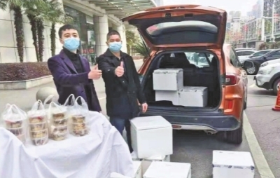 郝乐(左)和大厨温伟波(右)往医院送免费盒饭 长江日报讯(记者尹勤兵)29岁的武汉小伙郝乐创业开店还不到1年,就遭遇了这场罕见的新冠肺炎疫情。尽管面临巨额亏损,从1月25日开始,他却坚持给奋战在一线的医护人员免费送盒饭。截至2月12日,19天来保守估计,他已送出盒饭3500份,价值7万元。 “90后”老板郝乐在硚口开办了一家名叫“顺意食坊”的粤菜馆。2020年1月23日,武汉有些一线医护人员吃不上热饭,只能吃泡面的消息让郝乐揪心。他决定和厨师长官兆栋、大厨温伟波等5名滞留武汉的员工一起,利用店里储备的1吨食材,免费给医护人员做饭,并送餐上门。 每天清晨7时,郝乐从汉阳家中起床,赶到硚口店里备餐。上午10时50分,郝乐驾车赶到附近协和、同济、中山等多家医院送餐。提前一天,郝乐会跟各家医院确定好份数、送餐路线、送达时间。“高峰期时,送一圈回来得两个小时,回来后扒口饭,下午接着备餐,晚上5时左右出门继续送餐……大概到晚上9时,我才能开车回家。”郝乐说。 从开始两天几十份,到现在每天两三百份。为了让医护人员吃得营养健康,郝乐和同伴想尽办法变换花样。让郝乐感激的是,他得到了不少爱心人士的帮助,已有好几位热心市民,开车送来整箱的食材。 为开这个店,至今郝乐还借有外债。他说,他还有一点点积蓄,只要能撑一天,就要把给医护人员的免费盒饭做下去。“一线的医护人员太难了,我是武汉的一分子,让他们吃上一口热饭热菜,是我力所能及的事。” |