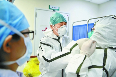蔡卫敏帮助同事穿戴防护服,医疗队有些队员平日里没有接触过防护服,蔡卫敏力所能及帮他们检查,避免穿戴不规范产生危险。本报记者 和冠欣摄 蔡卫敏是北京中医医院重症医学科的一名护士。2003年,她曾作为北京急救中心朝阳分中心的一员,勇敢应对非典疫情。而今43岁的她再度请缨,来到武汉“战疫”的最前线。 “这是我的职责啊!” 采访蔡卫敏难度大,面对疫情,蔡卫敏是一位勇敢的战士,可面对记者,她却有点紧张。“我说话太直……”采访当中,这是蔡卫敏说得最多的,可在其他战友眼里,直爽的性格恰恰是她最大的魅力。 在北京医疗队当中,北京中医医院团队由1名呼吸科医生、1名重症医学科医生和8名护士组成,蔡卫敏护士是队里年龄最大的。 写请战书,给领导发短信,甚至到了语无伦次的地步,直到接到医院电话通知她准备出发,蔡卫敏悬着的心才放了下来。问她为何这么想来,她不假思索,“我是护士,这是我的职责啊!” 在武汉,蔡卫敏就是同事们的“大姐”。上岗之前,她一遍遍地叮嘱大家有关病人护理和个人防护的各种细节,甚至连怎么穿成人纸尿裤,她都耐心细致地讲解示范。进入病房前,她还监督、帮助同事们穿好防护用品,两层口罩、三层帽子、两层手套、两层鞋套、护目镜等等,每一个细节都不放过。 “把笑容画在衣服上吧!” 蔡卫敏的隔离衣身前背后都画着笑脸:“我想让病人看到我时,心情能好一点儿。隔着口罩、护目镜,他们看不见我的表情,那就把笑容画在衣服上吧!” 一进入层层密闭的隔离病房,护士们几乎就没有坐下的时候。病人多,医护人员要不停地查房、换药、安抚。由于穿着防护服,没有办法上厕所,进入病房前半天,就要断食断水。再加上防护服完全不透气,几个小时忙下来,蔡卫敏早已汗流浃背,衣裤湿透。不过,患者们能看到的,却始终是她隔离衣上的笑脸,再加上“加油”的鼓励动作,那张笑脸似乎活了起来,给患者战胜病魔的勇气。 2003年非典疫情来袭时,蔡卫敏曾负责随队转运病患。即使在疫情形势最严峻的时候,她也始终站在离患者最近的地方。回想当年,她说:“我就是初生牛犊不怕虎。” 早在当时,蔡卫敏的吃苦耐劳和直爽性格,就给大家留下了深刻印象。相隔17年,面对新的疫情,她把这些优点再度带到了战场上。问起与当初的自己有什么不同,她说现在战斗经验更多了,而且责任更大了,不仅要照顾好患者,还要保护好战友。 |