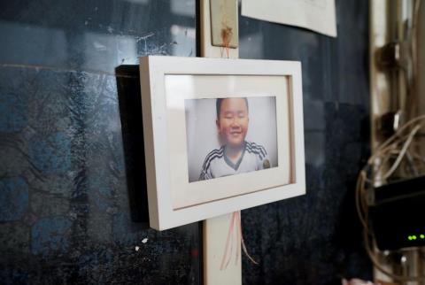 陈桢在包装蘑菇。 工作间的窗户上挂着的唯一一张照片,是儿子小轩的照片。照片里的这个小男孩穿着一件足球球衣,细长的眼睛笑成了两条直线。这里很快就会挂起第二张照片,因为七个月前,陈桢的第二个孩子小宝出生了。