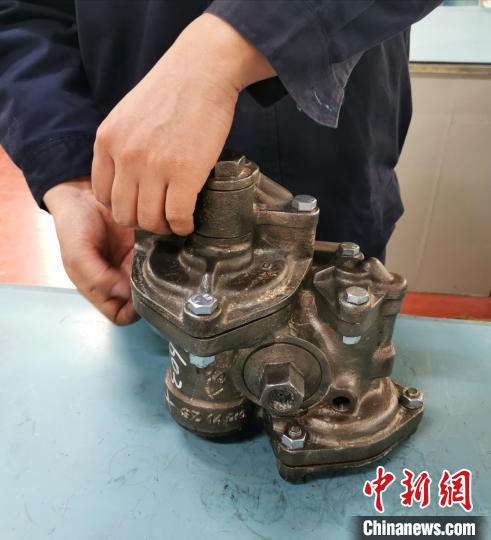 旅客列车制动系统“心脏”——制动阀。 杨杰英 摄 信松告诉记者,检修制动阀的一套流程下来需要花费两个多小时,组装应该是其中对技能要求较高的一道工序。 在制动室内,信松的检修技术被列为示范级。凭借扎实的理论技术和丰富的实操经验,信松能够在三分钟之内蒙上眼睛将一套制动阀组装完成。 采访中,信松向记者展示了盲眼组装制动阀的技能。“我觉得练习这个技能,主要是为了做到‘心中有数’,熟悉制动阀的每个配件,才能做到精检细修。”信松说。 今年26岁的张豫栋,两年前来到制动室后,便拜信松为师,学习制动阀检修技术,从最初的对制动系统一无所知,到现在熟练掌握各项安装要领。在师父信松的教导下,张豫栋快速成长。