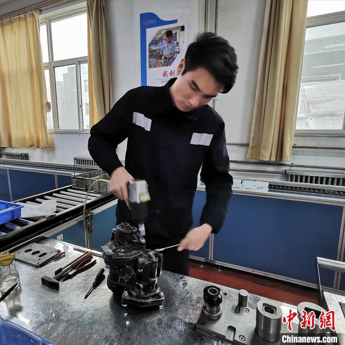 凭借扎实的理论技术和丰富的实操经验,信松能够在三分钟之内蒙上眼睛将一套制动阀组装完成。 杨杰英 摄 现在的两人亦师亦友,一同学习理论知识,互相出题考问,遇到制动故障两人钻研解决。在今年的技能比武中,张豫栋紧随师父,获得第二名的好成绩,两人成为一对“明星”师徒。 中国铁路太原局集团有限公司所有客车的制动阀都是由太原车辆段检修车间制动室的17名职工进行维修,其中有13名是28岁以下的年轻职工。 春运期间,由于加开支援南方的临客列车及春运整备任务要求,制动阀的需求数量猛增,由之前的月300套增加到450套。