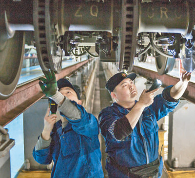 机械师认真检查动车组。潘俊强 吴华鹏摄影报道 清晨,黑龙江省伊春市气温降至零下38摄氏度,哈尔滨通信段伊春通信车间50岁的通信工付正强和工友前往大山深处去检修铁路通信电缆,他们负责汤林铁道线200多公里光电缆的检修工作。汽车靠不上边,他们背着50斤的工具装备,踩着没及脚踝的积雪走上3个多小时前往检修地点。 山林茂密,冬季风大雪厚,树木一旦压断电缆,会造成列车通信失灵。春运期间,付正强和工友们每天都要用油锯和砍刀清理超限树木,再爬上近5米的通信杆,检查电缆状态。他们就在大山深处,默默地守护着旅客的春运回家路。 同样,在铁路济南局集团有限公司青岛动车段的检修库里,动车组机械师挥汗劳作,全力投入,严格对动车组各部进行全面检修整备,确保春运期间高铁安全运行,为旅客提供放心、温馨、舒适的乘车环境。 |