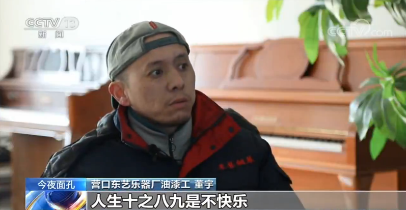 营口東藝乐器厂油漆工 董宇:人都是有喜怒哀乐,不可能说你永远总是快乐。你也会遇到难事,你也会有不开心的时候,你也会有感到压力大的时候,弹上钢琴了你的心情就是平静了。平和了会让你冷静,会让你心情得到舒缓,会让你(知道)你要面对现实,不要逃避这个东西,要冷静的去看待人和事。 生活就像乐章,有时欢快,有时落寞,有时激昂,有时也会消沉。董宇的人生就在2010年,遇到了变故,那一年,因为单位效益不好,他下岗了。 为了撑起那个原本就不富裕的小家,董宇干过装修、干过喷漆、送过快递,开过出租车……为了生计,哪怕是春节,他也不敢休息一天。 手越磨越粗 日子越过越好 养育孩子、照顾老人、还房贷、柴米油盐……董宇是家里的顶梁柱,上有老下有小,生计占用了他全部的时间,能令音符飞舞的那双巧手也被他干过的各种活计磨得越来越粗。 他说,再难的日子,也总会过去,只要心中不轻言放弃,而董宇始终没放弃的,就是自己的钢琴梦想。 为了生活忙于奔波的董宇,始终没有放弃他的钢琴梦。两年前,董宇辗转来到了营口東藝乐器厂工作,干的还是老本行,油漆工。工作上轻车熟路,而更让他感到兴奋的是,在这里每天都能弹上钢琴。
