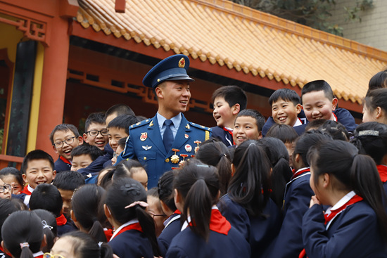 在四川中江黄继光纪念馆内,程强与继光中学的同学们分享个人成长经历。 2019年12月26日,四川省什邡市湔氐镇太乐村响起了震耳欲聋的鞭炮声和喜庆的锣鼓声。村里的街坊邻居听说程强荣立三等功载誉归来,纷纷前来参加庆功仪式。 12月下旬,空军空降兵某旅开展“功章励我强军志 立功喜报送回家”主题活动,隆重表彰立功受奖人员,并安排6个工作组奔赴15个省50余地,协同当地政府部门为立功官兵送去喜报和立功奖章。 “报喜小分队”一进太乐村村口,就被乡亲们热情簇拥,百余人欢天喜地来到程强家门口。他的父亲程书均没想到“动静这么大”,激动地眼睛里泛着泪花,一时有些不知所措。 该旅“报喜小分队”队长、宣传科干事杨明星将乡亲们聚集在程书均家大门口“热烈祝贺程强同志荣立三等功”的大红横幅下。在众多亲朋好友热烈的掌声中,杨明星宣读了程强的立功通令:程强是黄继光班第38任班长……多次在各种比武竞赛中取得金牌,获得军事训练标兵,特别是在参加2019年国庆阅兵任务中,先后被表彰为训练标兵、军姿标兵、正步标兵和进步之星,为此,部队决定给程强记三等功一次。 “程强立功了,你们高不高兴?” “高兴!” 围观乡亲们的声音中,满是自豪骄傲。“这孩子我看着长大的,从小就嚷着要当兵,还真干出了个样儿,我要给他点赞!” 程强最早被人们熟知是2008年汶川特大地震中,空降兵救援部队撤离时,送行的群众在马路两边绵延了好几公里。人群中,程强举着那条“长大我当空降兵”横幅,吸引了众人的目光。后来,网友们亲切地称呼他“地震男孩”。 地震发生时,程强正和小伙伴在池塘里游泳。爬上岸,他看到村子已经变成一片废墟,很多人在空地上抱头痛哭。他骑上车,冲回瓦砾遍地的学校,教学楼也塌了。这一幕幕成为程强的童年阴影。至今提起,他依然会眼圈发红。 程强记得很清楚,第二天,村子里突然传来消息:“解放军来了!”12岁的程强冲出自家搭建的简易帐篷,到村口观望。他看到一队解放军官兵背着各种器材物资,快速行进。他们的头盔上有“空降”二字,打着的红旗上写着“黄继光生前所在部队”。 在空降兵部队展开救援的日子里,程强每天跟着他们走街串巷。救援官兵开始挖掘废墟寻找幸存者,他就在不远处扒石头;官兵们用绳子拉倒危房,他就在队尾拽着绳子一起使劲……考虑到余震的危险,官兵们多次劝程强离开,父亲也不许他外出,但都挡不住他。 在空降兵部队的帮助下,受灾的乡亲很快住上了新搭建的板房,程强和同学们也恢复了上课。 “空降兵救了我,给我埋下了一颗想当空降兵的种子。”后来,程强才慢慢意识到,地震后那段经历给他带来了多么深远的影响。 临近中午,家门口的亲朋好友陆续散去,程强爸妈看着儿子的军功章笑得合不拢嘴,程书均紧紧握着杨明星干事的手说:“谢谢,感谢部队把我儿子培养得这么好!” 程强从来没有见过父母这么开心。母亲赵家会笑呵呵地说:“他爸爸高兴,我也高兴,我们家人都高兴,今天这些亲戚都来,就是觉得高兴嘛。” 赵家会说,平时最常做的事儿就是翻看儿子从部队寄回来的照片,她指着其中一张说:“这张是他刚去的时候照的,他打电话说,爸爸妈妈我要去空降兵了,他爸爸说要的嘛,你的愿望嘛!” 入伍那年新训结束后,在分兵现场,程强第一次目睹了黄继光英雄连的风采。“他们的肌肉块比别人都大,太壮了!”程强说起黄继光英雄连的接兵骨干,不好意思地笑了。他心里有一丝胆怯——自己瘦小单薄的身板儿能不能扛住黄继光英雄连高强度的训练? 登上运兵车,接兵骨干、黄继光英雄连四班班长汪文博开始统计新兵信息。“你是什邡的?”问到程强时,汪文博惊讶地说,“汶川地震的时候,我们连队就是在什邡进行救援。” 细聊之后,程强确信,黄继光英雄连就是参与家乡救援的空降兵部队之一。他心里感到无比温暖,“当年救过乡亲们的恩人,如今成了自己的战友。” 参观连史馆的过程中,程强第一次了解到很多关于黄继光和连队的历史细节。战场上,像黄继光一样用血肉之躯堵上敌人枪眼的烈士,有名可查的就有38人。程强被震撼了:“在朝鲜战场上,不止一个‘黄继光’。或者说,黄继光是这么多舍生取义的英雄人物的缩影。” 满怀对空降兵部队的感恩,又经受了黄继光精神的洗礼,程强觉得,唯有在训练场上练强素质,在比武场上摘金夺银,才对得起“黄继光英雄连”的荣誉称号。 一次,赴青藏高原参加比武,程强和战友组成6人战斗小组,挑战10多个极限课目。在长途武装奔袭中,由于海拔高、缺氧严重,开跑没多久程强就觉得呼吸有些困难,他咬牙坚持着。最后600米,程强感觉自己随时都可能倒下。为了胜利,他高喊着黄继光的名字,开始了最后的冲刺。最终,他第一个冲过终点,比第二名快了近3分钟。程强的这股拼劲,激励全组夺得了比武的冠军。 2017年10月19日,黄继光英勇牺牲65周年纪念日,程强被任命为“黄继光班”第38任班长。 担任班长的日子里,程强带领黄继光班,全力投入各类演训任务。他时刻提醒自己:“只有给黄继光班争光的义务,没有给黄继光班抹黑的权利。” 2019年3月,程强通过竞选进入阅兵集训队。但阅兵训练不同于其他军事训练,在集训初期程强就遭遇了不小的挑战——他军姿站立两腿合不拢,肩膀窄枪带容易滑落,正步踢腿时脚尖习惯上翘。 程强回忆说,